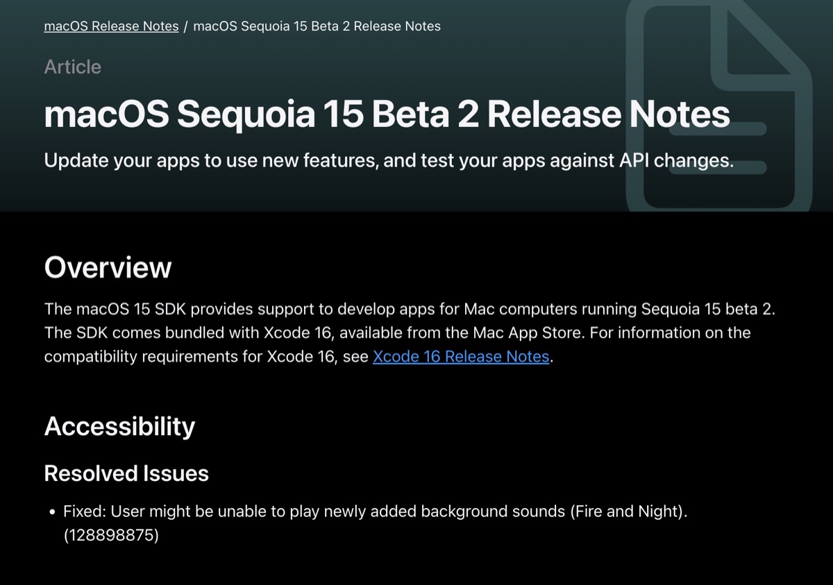macOS Sequoia 15 Beta 2 Release Notes | Apple Developer Documentation