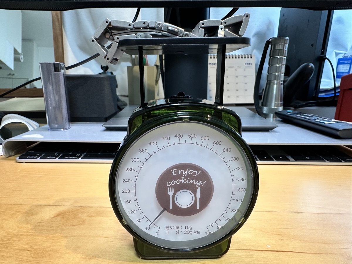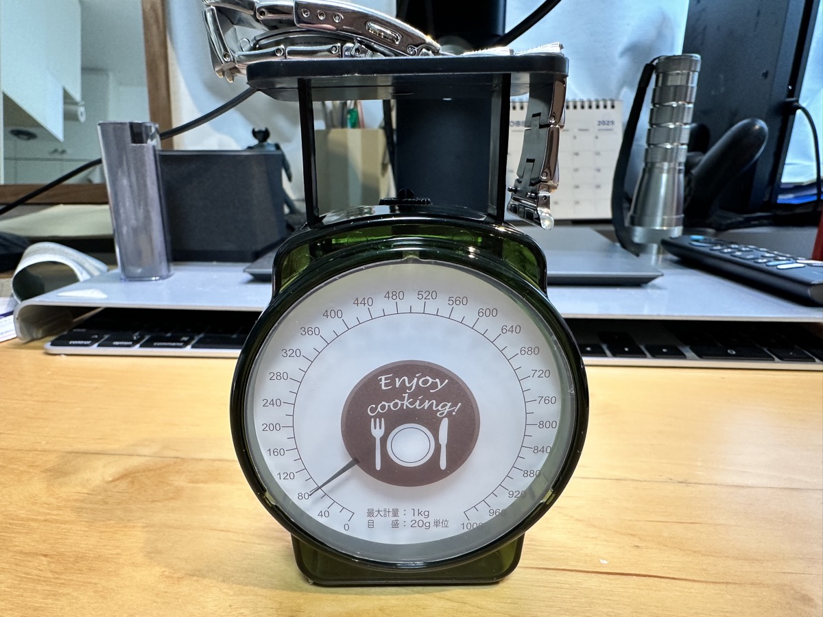 感覚的にあまりにも軽かったので、試しに「キッチン目安計(セリア)」で測ってみたら、約40グラムでした。そりゃー軽く感じるわけだわ。