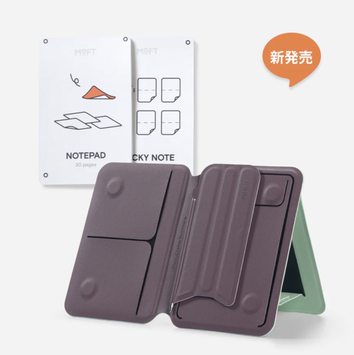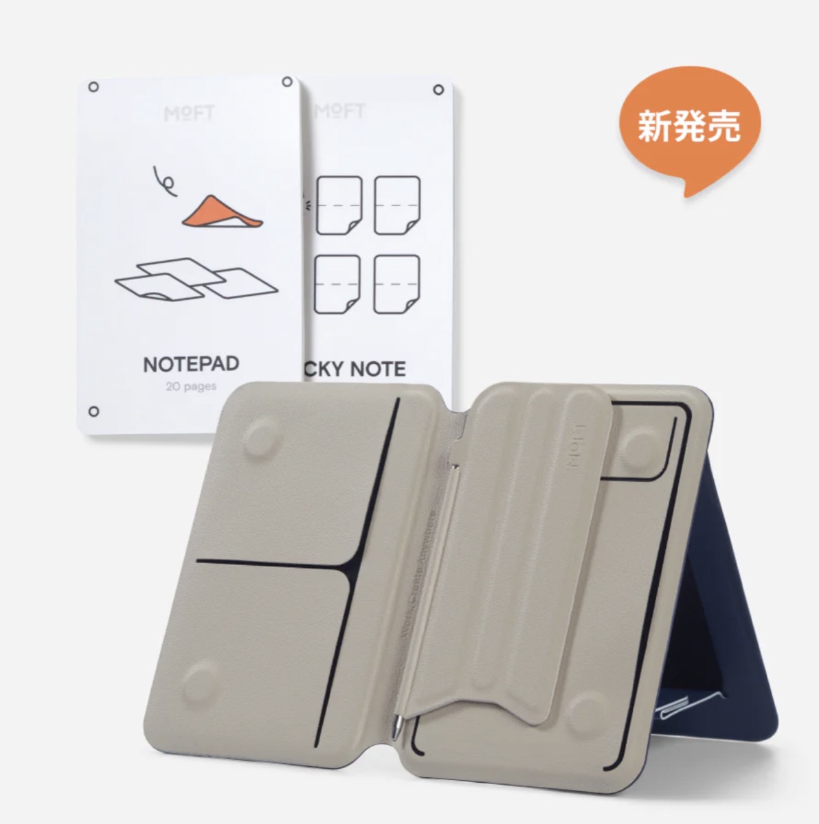 マグネット式の三つ折りボールペン、📝メモ付きのデジアナスタンド「MOFTインスピレーションスタンド&ノート」一般販売開始