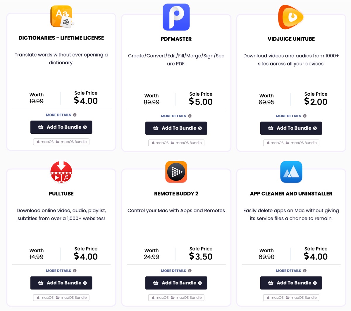 例えば、TextSniper、VidJuice UniTube、Anamorphic Pro、MenuBar、LensFlare、GlueMotion、MacClean360、Integrity Pro、SpeakMe、Squeezer、Sidetrax Royalty-free Music Bundleの11タイトルを購入しようとすると通常価格では合計421.89ドルですが、これが21.50ドルで購入できます。