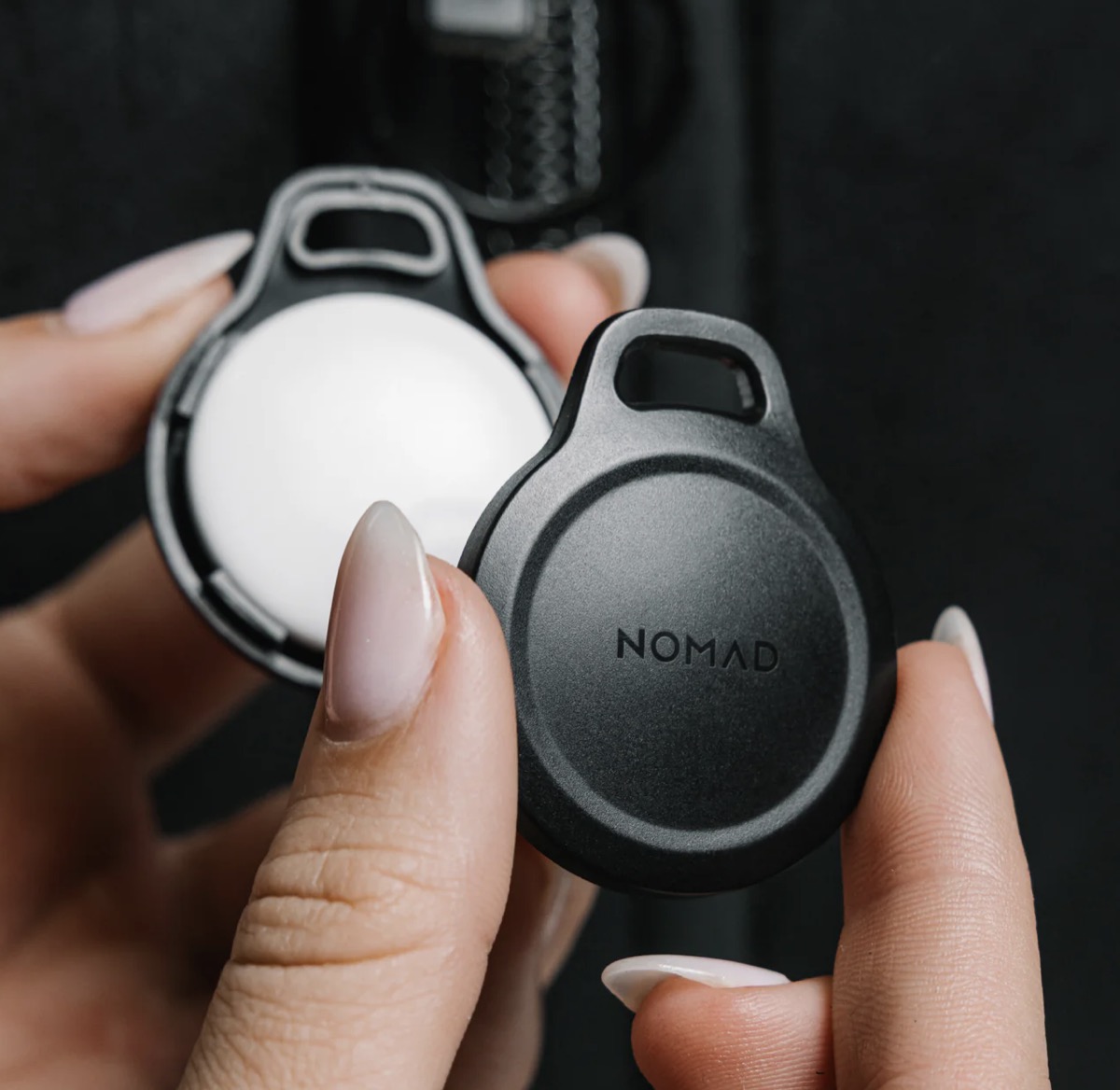本体にはカラーマッチしたキーリングが付属し、鍵やバッグ、ラゲッジに装着して使うことができるし、マットブラックの外観はNOMAD製品らしさが出ています。AirTag本体よりも大人っぽいので、個人的には好み。
