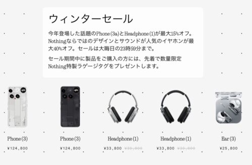 Nothing Japan公式でウインターセールがスタート。