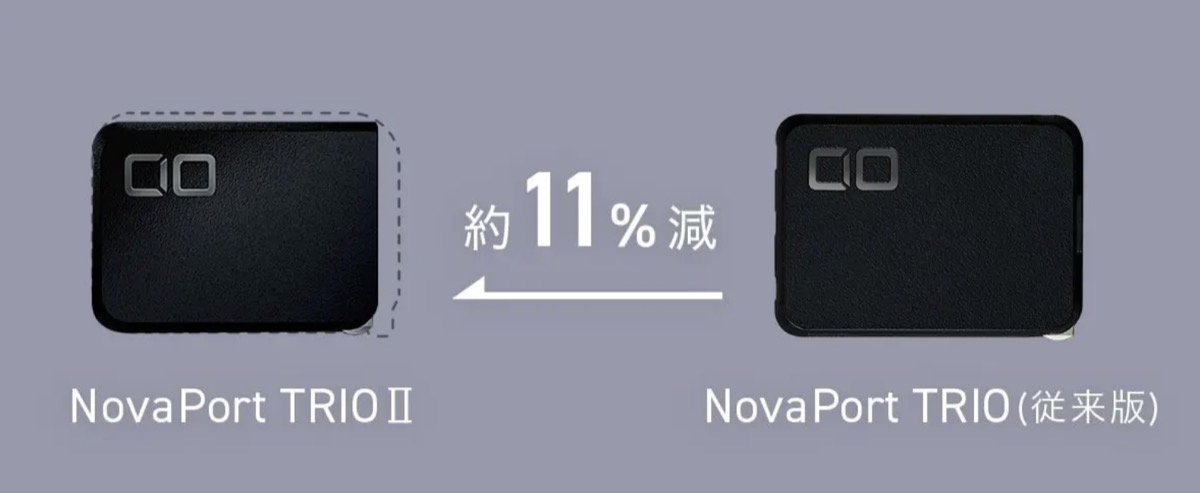超小型充電器の「NovaPort TRIO」から、さらに体積比で約11%小型化しています。
