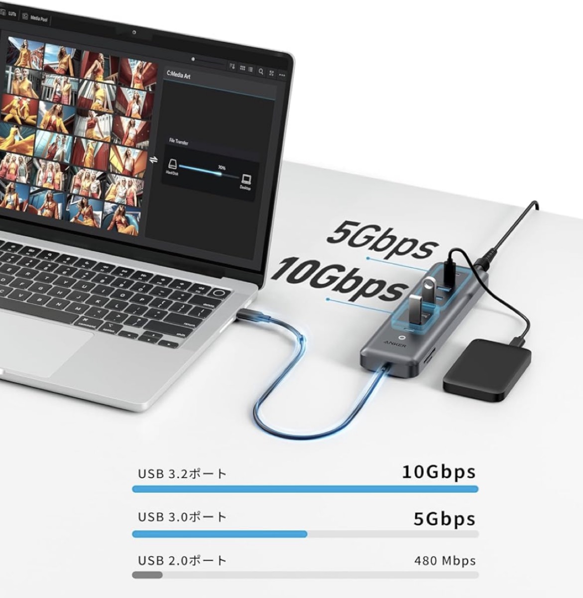 ただ、カードスロット付きのUSBハブ製品は珍しい中、Anker製品で選択肢があるのは嬉しいですね。