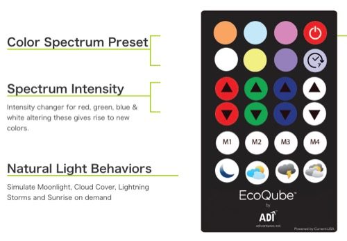 LEDリモートには、自然環境のライティングをシミュレートするボタンも。