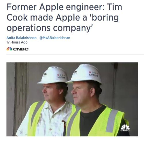 元AppleエンジニアがTim Cookになってから退屈なカンパニーになったと報じている,CNBCの記事。