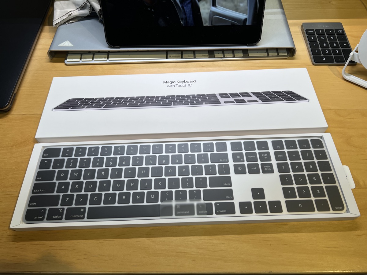 USB-Cポートバージョン待ちしていたんだけど、円安の価格改定で高くなっちゃったから駆け込みで導入した「Touch ID搭載Magic Keyboard」。