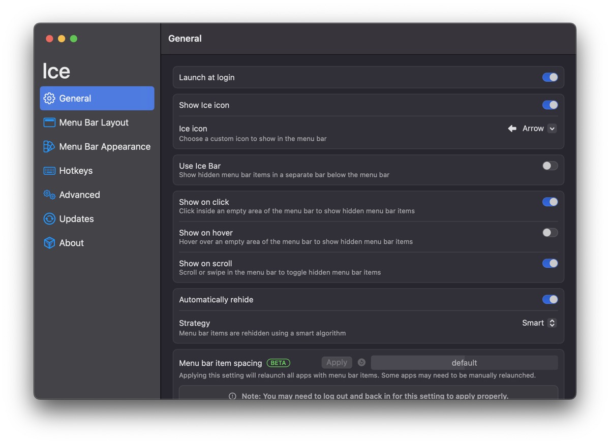 macOSのメニューバー整理ユーティリティ「Ice」