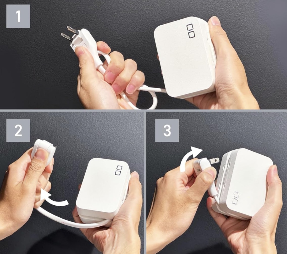 220グラムのコンパクトサイズで、ケーブルが電源タップに巻取りできるのがポイントです。