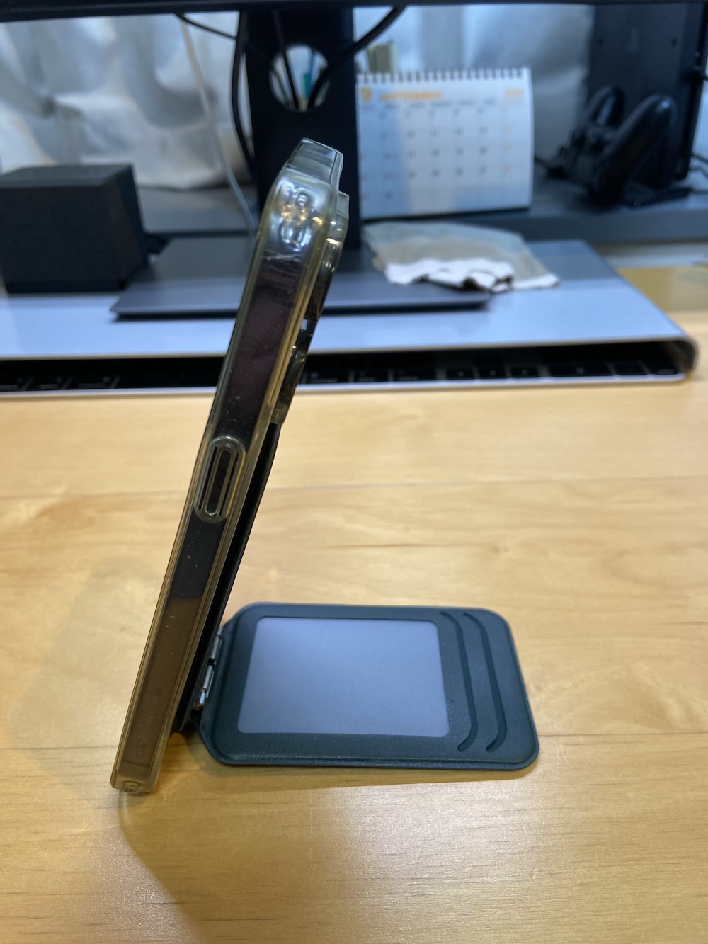 普段はMagSafeウォレット/スタンドとして使いながら、別の場所に移動して作業しないといけない時には、設置しておいた「Surface Mount」にスライドインして、何かBGV/BGMを再生するという使い方がかなりいけてます。