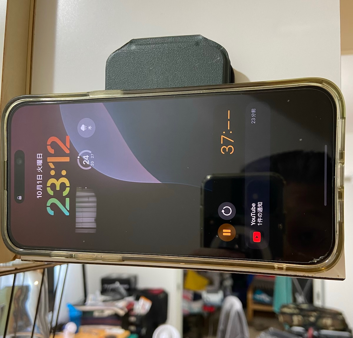 その後、iPhoneを外して、マウントはそのまま1日放置した後に、iPhoneを取り付けてみたけど、これも落ちることもなし。