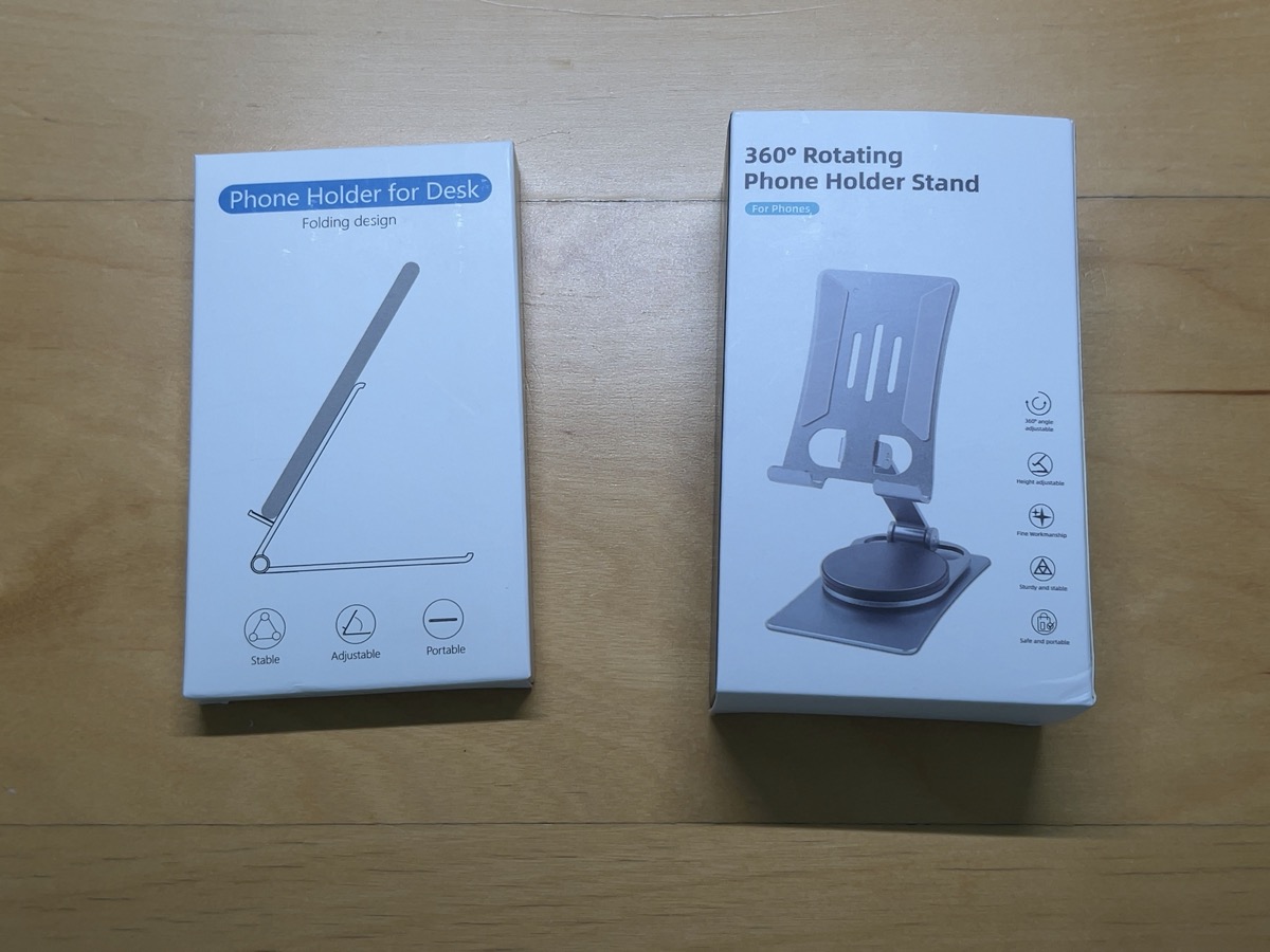 アルミニウム製のしっかり感+折りたたみ&ポータブルなスマートフォンスタンド2種類レビュー