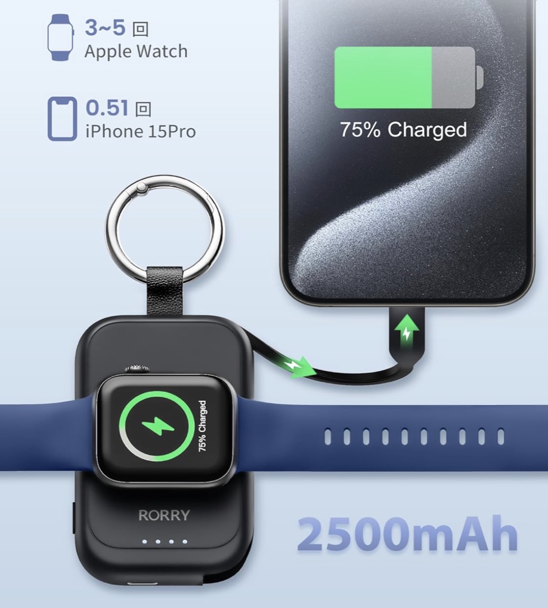 そんな中、少し前に候補リストに入れていた「RORRY Apple Watch充電器つきモバイルバッテリー」がセールに突入。