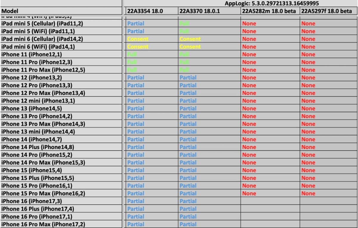 404 Mediaによると、「Graykey」は世界中の法執行機関が使用している携帯電話のロック解除および科学捜査ツールですが、Appleのモバイルオペレーティングシステムの最近リリースされた2つのバージョンであるiOS 18またはiOS 18.0.1を実行するすべての最新のiPhoneから部分的なデータしか取得できません。