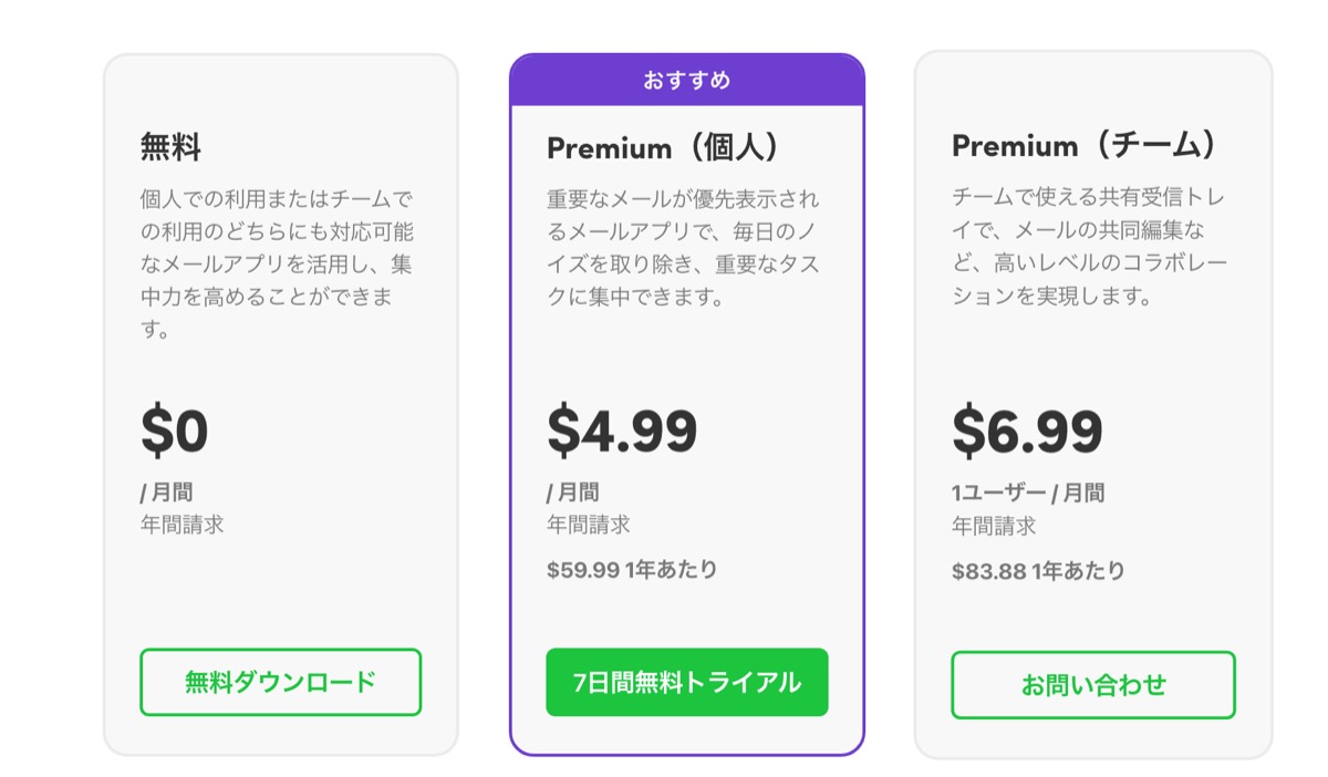 Premiumには優先メール、ゲートキーパー&送信者のブロック、スレッドのミュートなども含まれています。