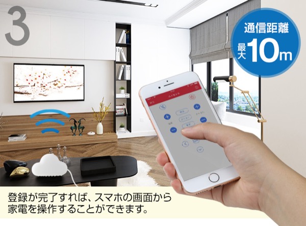 複数の一般的な家電の赤外線リモコンを登録、または、複数のBluetooth機器を登録し、その家電をスマートフォンから操作可能になります。