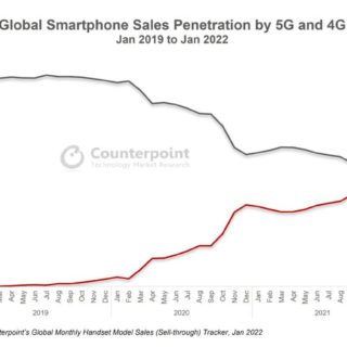 今年の1月に世界の5Gスマートフォンの販売普及率が初めて4Gを上回りました。 Counter...