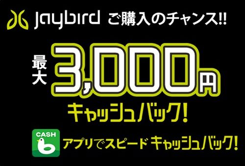 [1/8まで]2,000〜3,000円がキャッシュバックされる「Jaybird イヤホン キャッシュバックキャンペーン」
