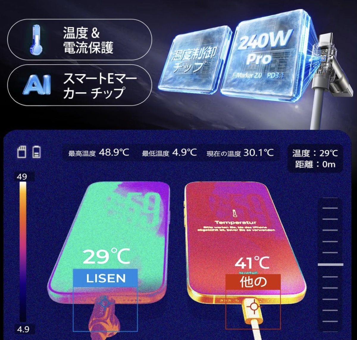 ・最大240W高速充電、480Mbpsデータ転送