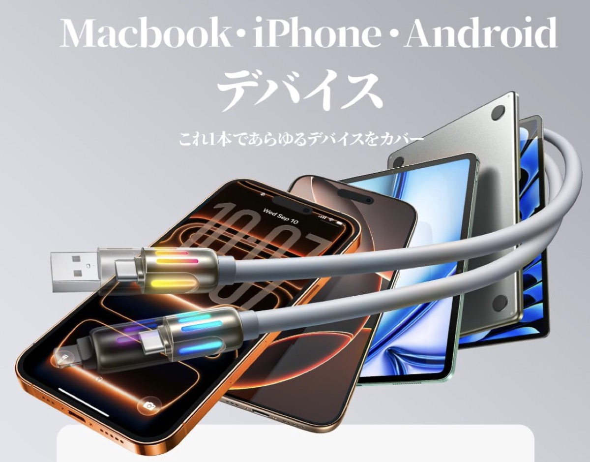 今では選択肢が少なくなってきたUSB-C、USB-A、Lightningの複合ケーブル「LISEN マルチ充電ケーブル4in1」がさらにお得にゲットできるクーポンあり