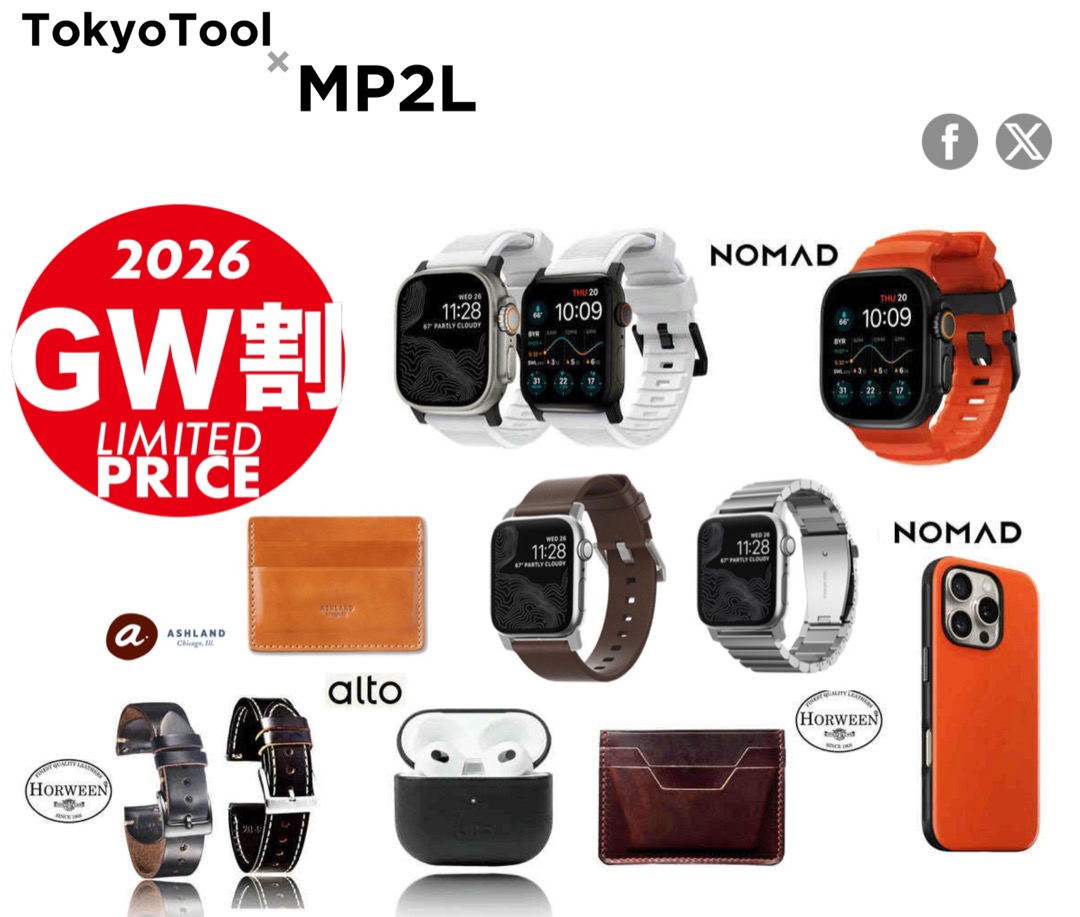 NOMAD・MP2L・altoなど人気ブランドのApple Watchバンド、コードバンウォレット、iPhoneレザーケースなど多数の製品がセール対象です。