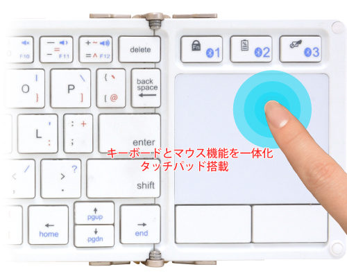 「TOUCH+」は、持ち運びしやすい三つ折りで、重さ204グラムのBluetoothキーボードです。