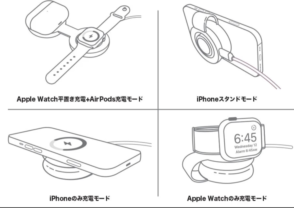 2 in 1なので、iPhoneとApple Watchとか、Apple WatchとAirPodsとかで充電できますね。