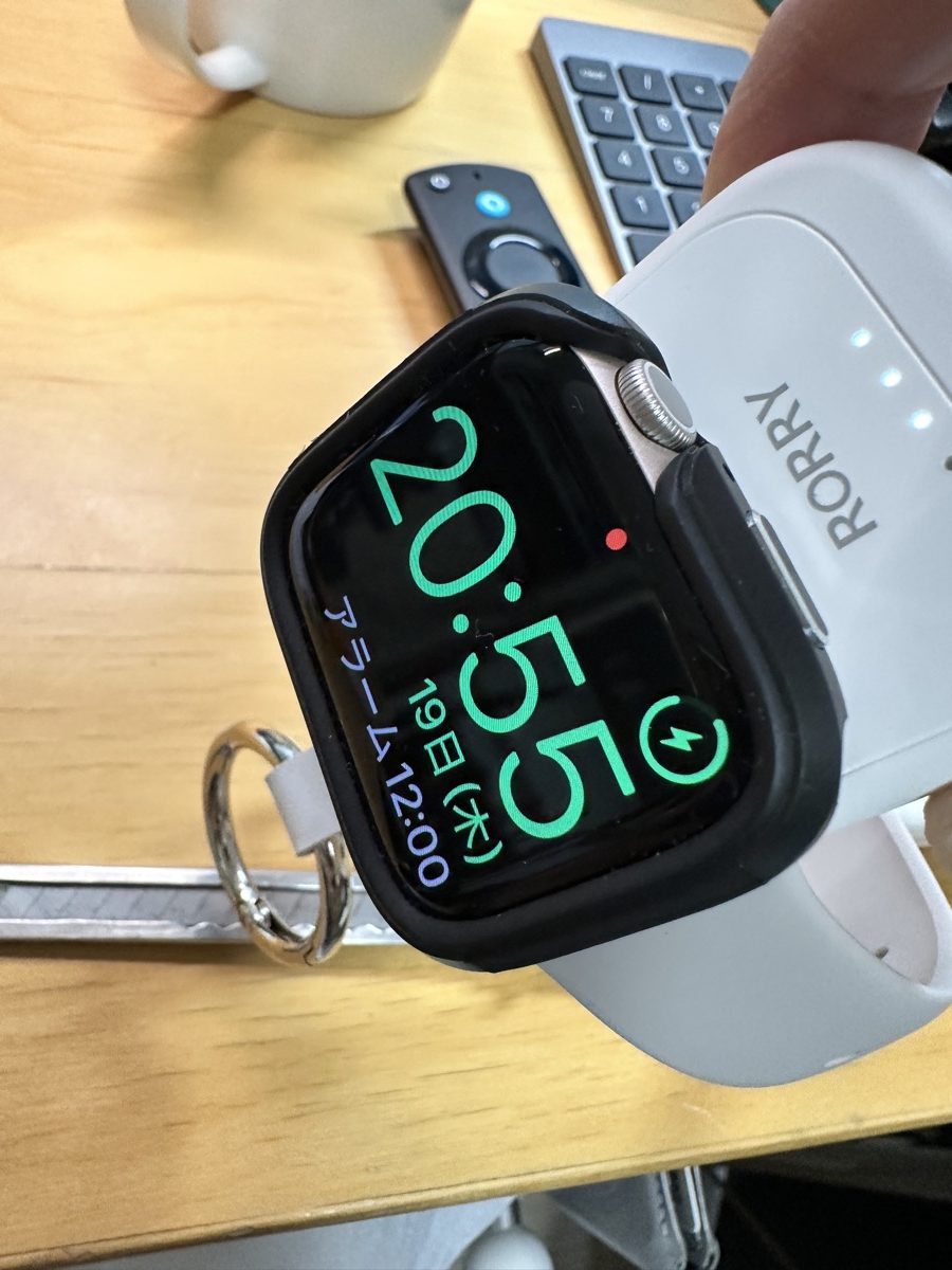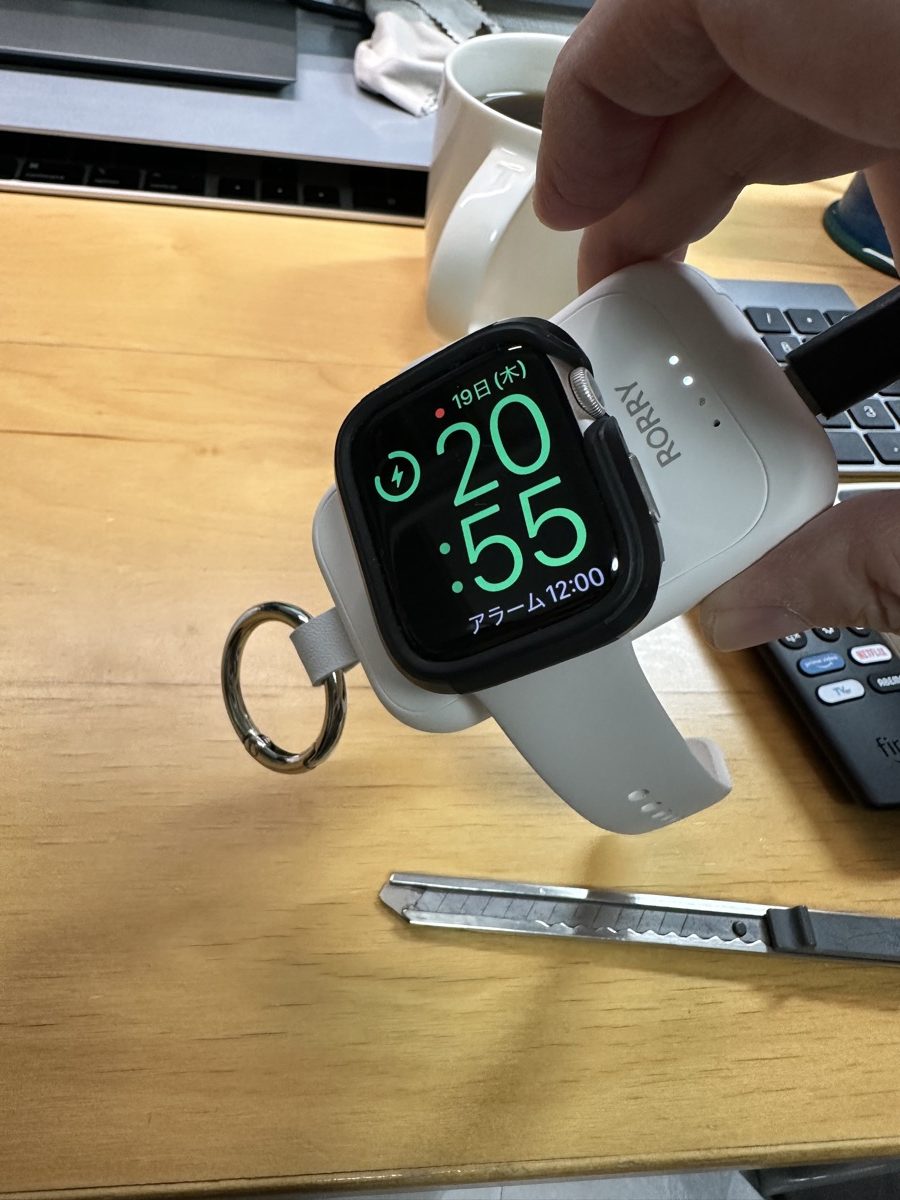 そして、この前ポチった「RORRY アップルウォッチ充電器+モバイルバッテリー」が到着。なので、軽くインプレッション。