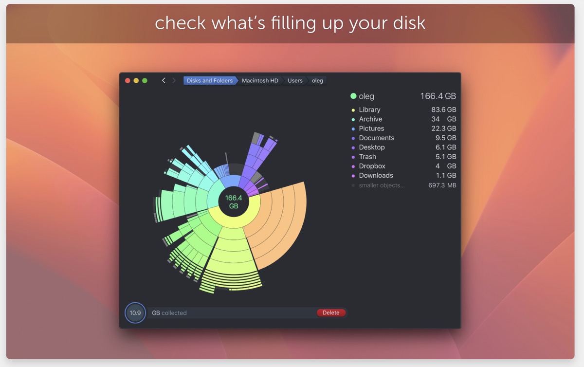 ディスクスペースを占有しているものを見つけ、削除する「DaisyDisk」。