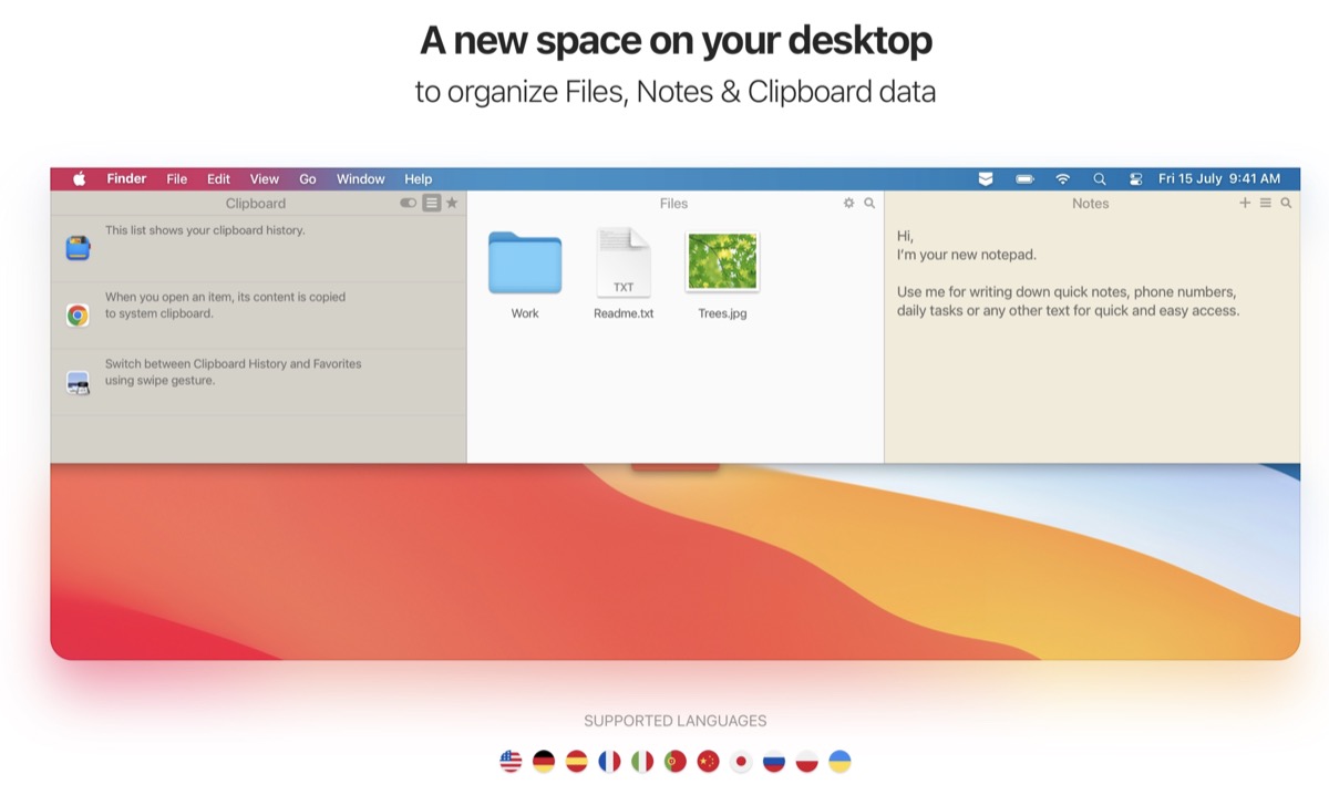 毎日のファイルやメモ、クリップボードのデータを効率的に管理できる「Unclutter」あたりは持っていると便利です。