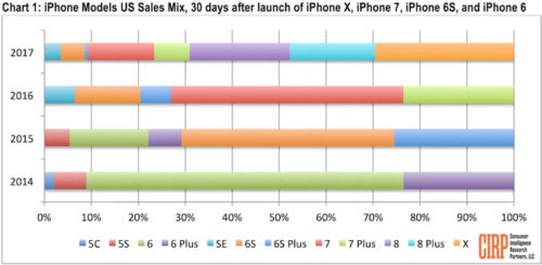 USのiPhone販売動向:iPhone Xは発売一ヶ月間では全体の30%