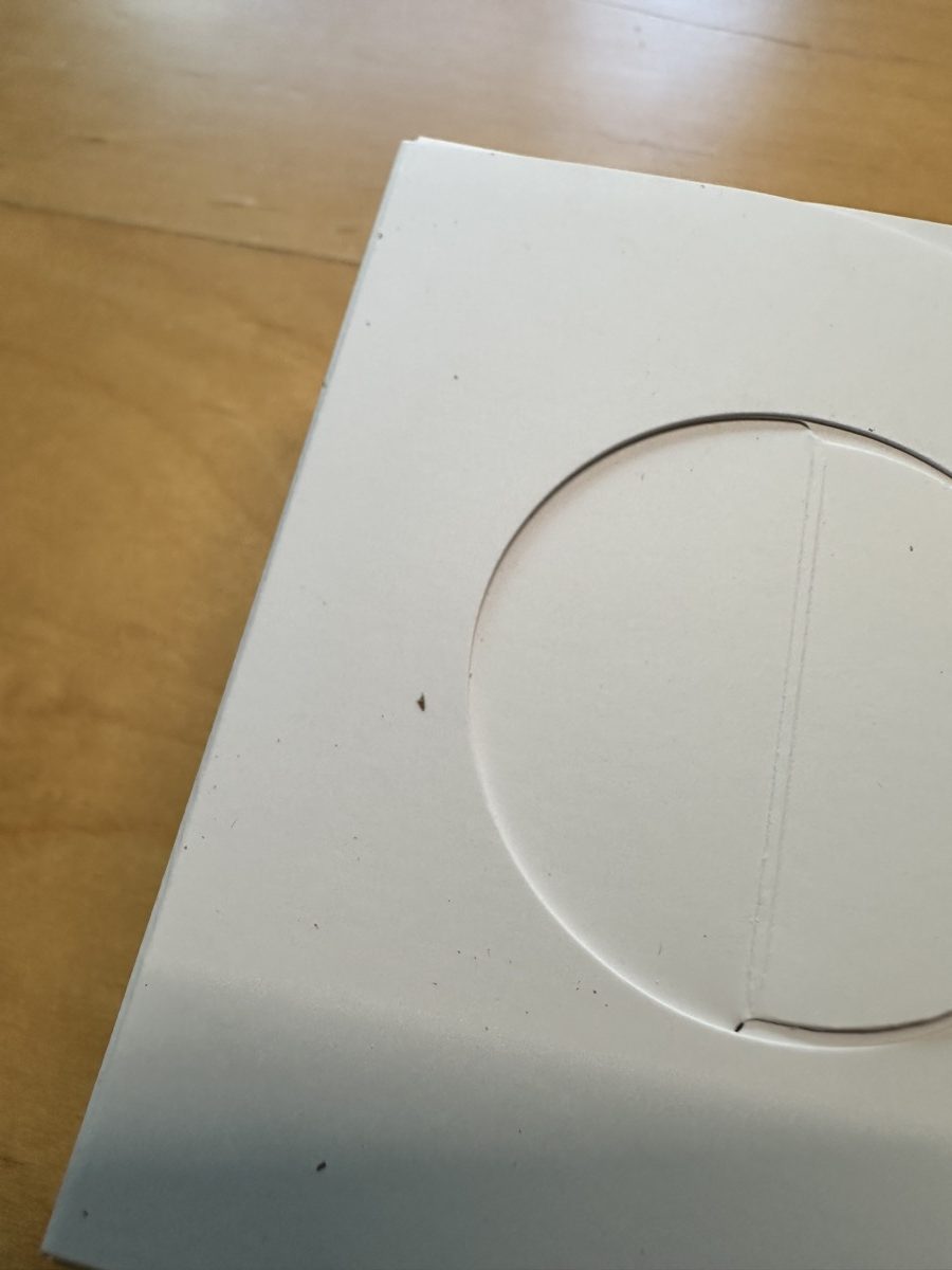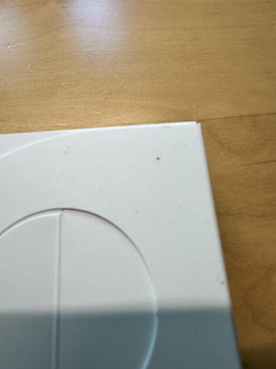 よくよく見ると、パッケージの2箇所に小さな汚れ?が。