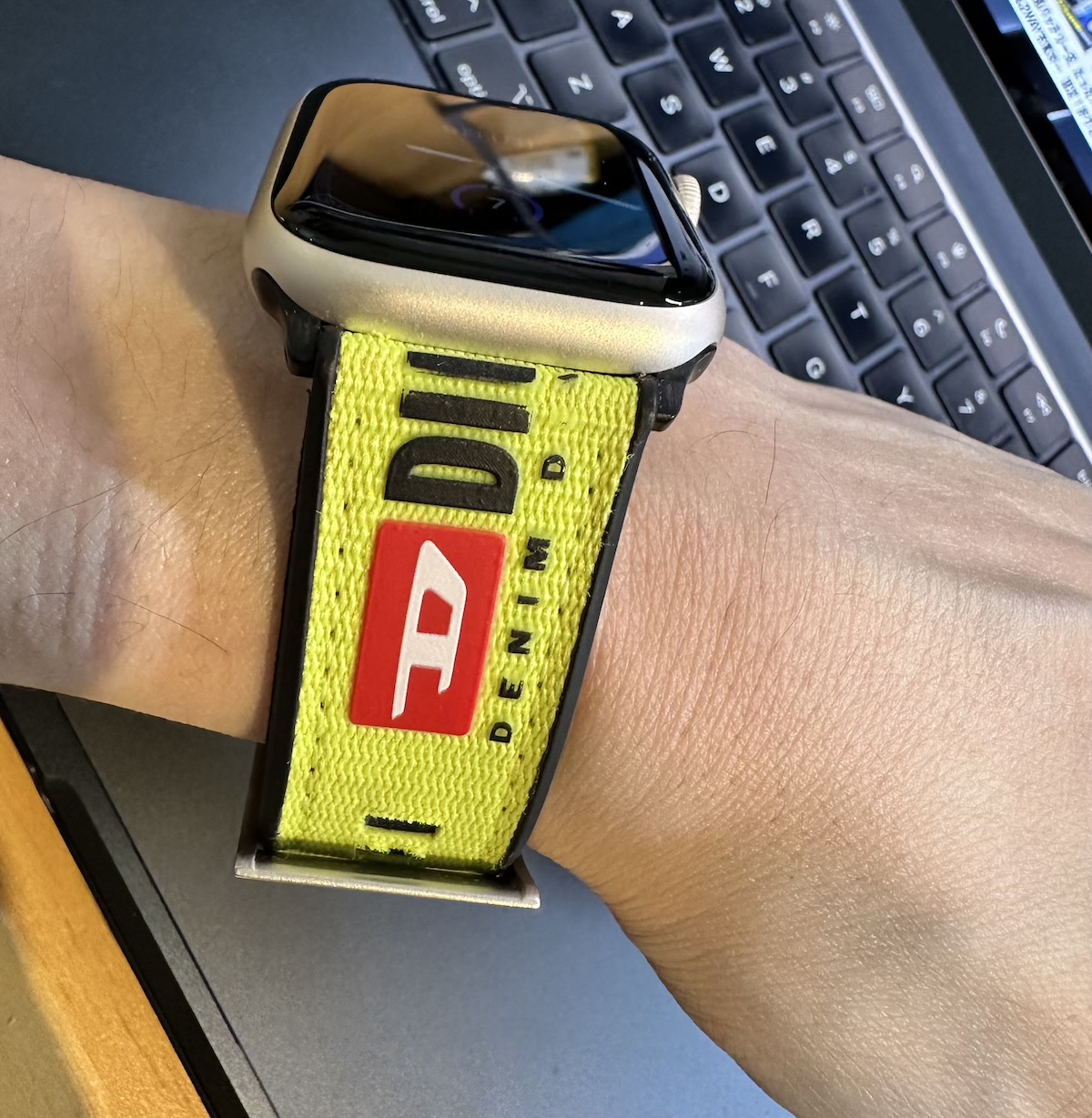 なお、シリーズ9につけているバンドは、同じく、Dieselのスマートウォッチ「Full Guard 2.5」のバンドです。これにApple Watchバンド用の変換アダプターを取り付けて、流用してます。